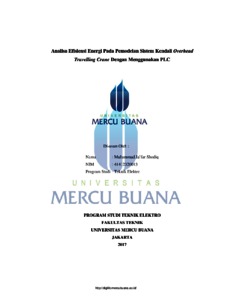 SHODIQ, MUHAMMAD JA`FAR (2017) ANALISA EFISIENSI ENERGI PADA PEMODELAN SISTEM KENDALI OVERHEAD TRAVELLING CRANE DENGAN MENGGUNAKAN PLC. S1 thesis, UNIVERSITAS MERCU BUANA - BUNCIT.