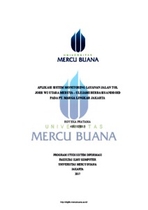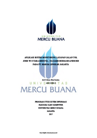 PRATAMA, ROY EKA (2018) APLIKASI SISTEM MONITORING LAYANAN JALAN TOL JORR W2 UTARA MERUYA–ULUJAMI BERBASIS ANDROID PAD APT. MARGA LINGKAR JAKARTA. S1 thesis, Universitas Mercu Buana Bekasi.