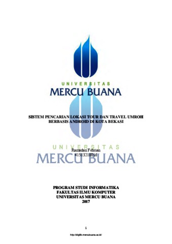 FEBRIAN, RAMADAN (2017) SISTEM PENCARIAN LOKASI TOUR DAN TRAVEL UMROH BERBASIS ANDROID DI KOTA BEKASI. S1 thesis, Universitas Mercu Buana Bekasi.