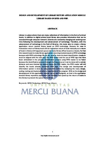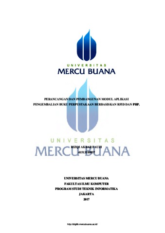 FAUZI, RIZQI AKBAR (2017) PERANCANGAN DAN PEMBANGUNAN MODUL APLIKASI PENGEMBALIAN BUKU PERPUSTAKAAN BERBASISKAN RFID DAN PHP. S1 thesis, Universitas Mercu Buana Bekasi.