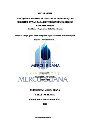NUGROHO, M. RADITYA (2019) MANAJEMEN RISIKO BIAYAPELAKSANAANPEKERJAAN STRUKTUR BAWAH PADA PROYEK BANGUNAN GEDUNG BERBASIS PMBOK (Studi Kasus : Proyek Grand Dhika City Jatiwarna. S1 thesis, UNIVERISTAS MERCU BUANA - BUNCIT.