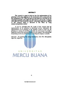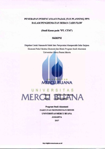 PURNOMO, ADITIYA (2017) PENERAPAN PERENCANAAN PAJAK (TAX PLANNING) PPN DALAM PENGHEMAT BEBAN CASH FLOW. S1 thesis, UNIVERISTAS MERCU BUANA - BUNCIT.