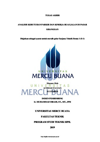 FAUZAN, ACHMAD (2019) ANALISIS KEBUTUHAN PARKIR DAN KINERJA RUAS JALAN DI PASAR KRANGGAN. S1 thesis, Universitas Mercu Buana Bekasi.