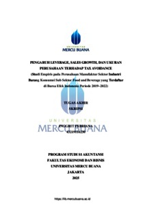 FEBRIANA, INGGRIT (2025) PENGARUH LEVERAGE, SALES GROWTH, DAN UKURAN PERUSAHAAN TERHADAP TAX AVOIDANCE (Studi Empiris pada Perusahaan Manufaktur Sektor Industri Barang Konsumsi Sub Sektor Food and Beverage yang Terdaftar di Bursa Efek Indonesia Periode 2019 - 2022). S1 thesis, Universitas Mercu Buana Jakarta.