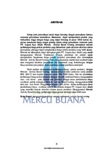 PURNAMASARI, IKA (2016) PENERAPAN METODE ACTIVITY BASED COSTING SEBAGAI PENETAPAN HARGA POKOK PRODUKSI (STUDI KASUS PADA PT. LOGAM JAYA ABADI). S1 thesis, Universitas Mercu Buana Bekasi.