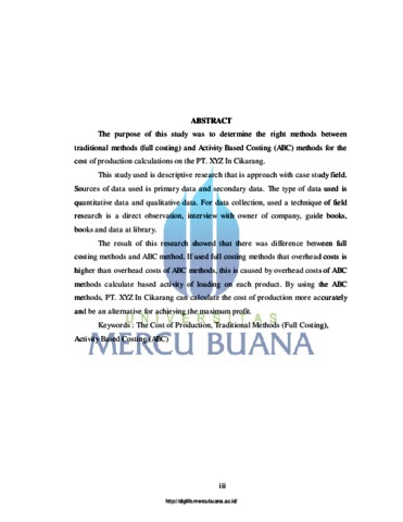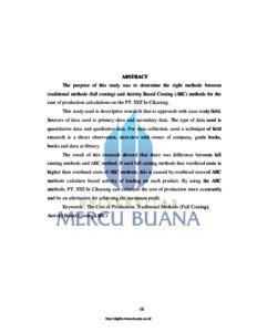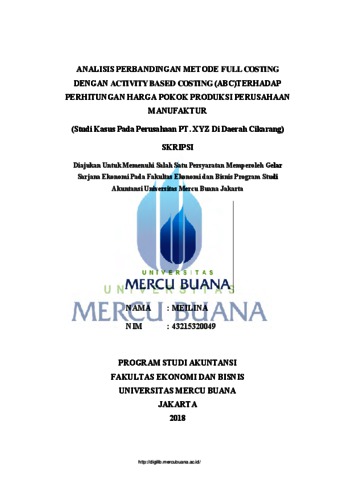 MEILINA, MEILINA (2018) ANALISIS PERBANDINGAN METODE FULL COSTING DENGAN ACTIVITY BASED COSTING (ABC)TERHADAP PERHITUNGAN HARGA POKOK PRODUKSI PERUSAHAAN MANUFAKTUR (Studi Kasus Pada Perusahaan PT. XYZ Di Daerah Cikarang). S1 thesis, Universitas Mercu Buana Bekasi.