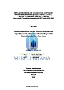 AFINA, NADIA AULIA (2018) PENGARUH CORPORATE GOVERNANCE, CORPORATE SOCIAL RESPONSIBILITY (CSR) DAN INTELLECTUAL CAPITAL TERHADAP KINERJA KEUANGAN (Survey pada Perusahaan Manufaktur di BEI tahun 2012-2016). S1 thesis, Universitas Mercu Buana Bekasi.