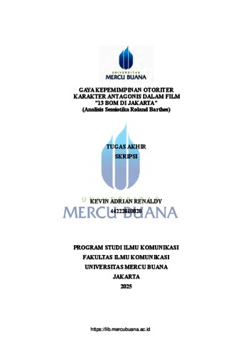 RENALDY, KEVIN ADRIAN (2026) GAYA KEPEMIMPINAN OTORITER KARAKTER ANTAGONIS DALAM FILM '13 BOM DI JAKARTA' (Analisis Semiotika Roland Barthes). S1 thesis, Universitas Mercu Buana Jakarta.
