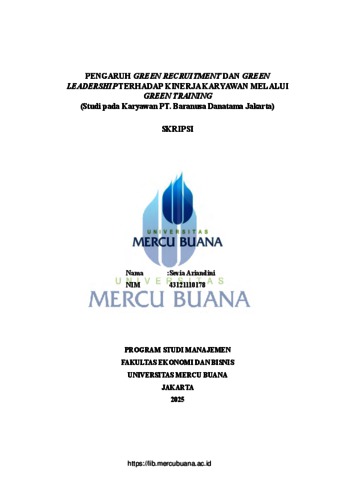 ARIANDINI, SEVIA (2025) PENGARUH GREEN RECRUITMENT DAN GREEN LEADERSHIP TERHADAP KINERJA KARYAWAN MELALUI GREEN TRAINING (Studi pada Karyawan PT. Baranusa Danatama Jakarta). S1 thesis, Universitas Mercu Buana Jakarta.