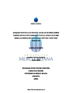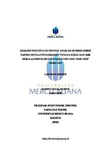 HARIST, SANDY FAIZAL (2025) ANALISIS PERCEPATAN PROYEK APLIKASI RUBBER LINING TANGKI DENGAN PENAMBAHAN TENAGA KERJA DAN JAM KERJA (LEMBUR) MENGGUNAKAN METODE TIME COST TRADE OFF. S1 thesis, Universitas Mercu Buana Jakarta.