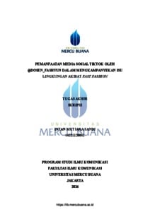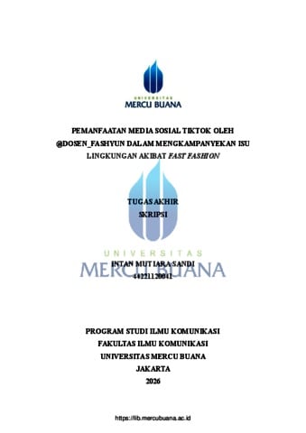 SANDI, INTAN MUTIARA (2026) PEMANFAATAN MEDIA SOSIAL TIKTOK OLEH @DOSEN_FASHYUN DALAM MENGKAMPANYEKAN ISU LINGKUNGAN AKIBAT FAST FASHION. S1 thesis, Universitas Mercu Buana Jakarta.