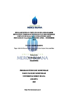 ASTUTI, DWI BINTANG (2025) PENGARUH PESAN CHITATO OLEH AMBASSADOR SEVENTEEN TERHADAP PENINGKATAN BRAND IMAGE CHITATO DI KALANGAN FOLLOWERS AKUN INSTAGRAM @mychitato PERIODE APRIL - DESEMBER 2025. S1 thesis, Universitas Mercu Buana Jakarta.