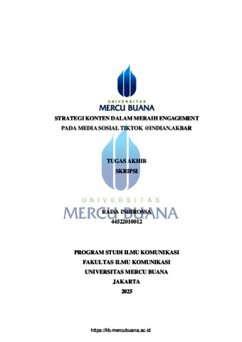 INDIROSSA, RAISA (2025) STRATEGI KONTEN DALAM MERAIH ENGAGEMENT PADA MEDIA SOSIAL TIKTOK @INDIAN.AKBAR. S1 thesis, Universitas Mercu Buana Jakarta.