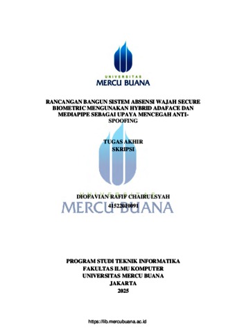 CHAIRULSYAH, DIOFAVIAN RAFIF (2026) RANCANGAN BANGUN SISTEM ABSENSI WAJAH SECURE BIOMETRIC MENGUNAKAN HYBRID ADAFACE DAN MEDIAPIPE SEBAGAI UPAYA MENCEGAH ANTI - SPOOFING. S1 thesis, Universitas Mercu Buana Jakarta.