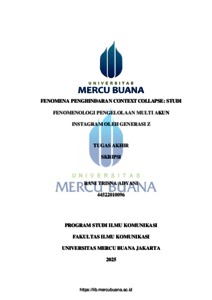 ADYANI, RANI TRISNA (2026) FENOMENA PENGHINDARAN CONTEXT COLLAPSE: STUDI FENOMENOLOGI PENGELOLAAN MULTI AKUN INSTAGRAM OLEH GENERASI Z. S1 thesis, Universitas Mercu Buana Jakarta.