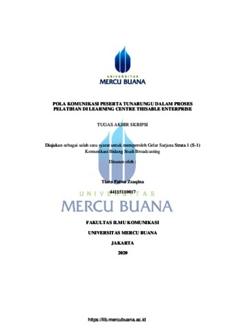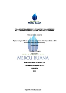 ZSAQINA, TIARA FATWA (2020) POLA KOMUNIKASI PESERTA TUNARUNGU DALAM PROSES PELATIHAN DI LEARNING CENTRE THISABLE ENTERPRISE. S1 thesis, Universitas Mercu Buana Jakarta.