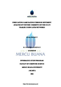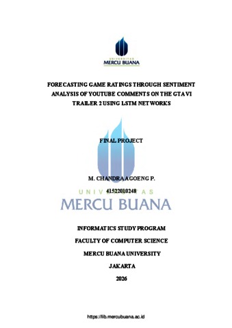 ABDULLAH, M. CHANDRA AGOENG PRAMUDYA (2026) FORECASTING GAME RATINGS THROUGH SENTIMENT ANALYSIS OF YOUTUBE COMMENTS ON THE GTA VI TRAILER 2 USING LSTM NETWORKS. S1 thesis, Universitas Mercu Buana Jakarta.