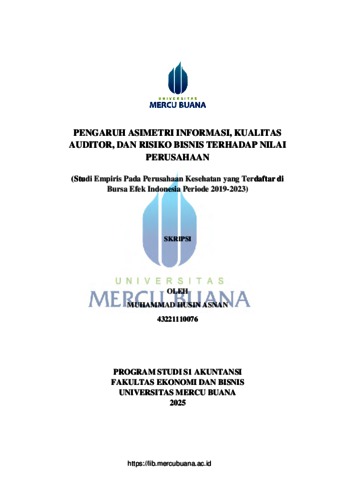 ASNAN, MUHAMMAD HUSIN (2025) PENGARUH ASIMETRI INFORMASI, KUALITAS AUDITOR, DAN RISIKO BISNIS TERHADAP NILAI PERUSAHAAN (Studi Empiris Pada Perusahaan Kesehatan yang Terdaftar di Bursa Efek Indonesia Periode 2019-2023). S1 thesis, Universitas Mercu Buana Jakarta.