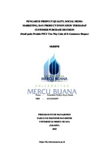 DIANTI, ANANDHITA WAHYU SETYA (2025) PENGARUH PRODUCT QUALITY, SOCIAL MEDIA MARKETING, DAN PRODUCT INNOVATION TERHADAP CUSTOMER PURCHASE DECISION (Studi pada Produk PIXY Two Way Cake di E-Commerce Shopee). S1 thesis, Universitas Mercu Buana Jakarta.