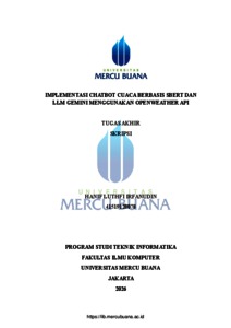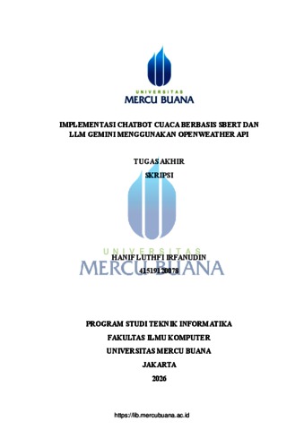 IRFANUDIN, HANIF LUTHFI (2026) IMPLEMENTASI CHATBOT CUACA BERBASIS SBERT DAN LLM GEMINI MENGGUNAKAN OPENWEATHER API. S1 thesis, Universitas Mercu Buana Jakarta.