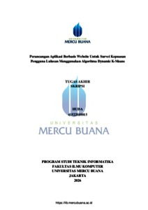 HUDA, HUDA (2026) PERANCANGAN APLIKASI BERBASIS WEBSITE UNTUK SURVEI KEPUASAN PENGGUNA LULUSAN MENGGUNAKAN ALGORITMA DYNAMIC K-MEANS. S1 thesis, Universitas Mercu Buana Jakarta.