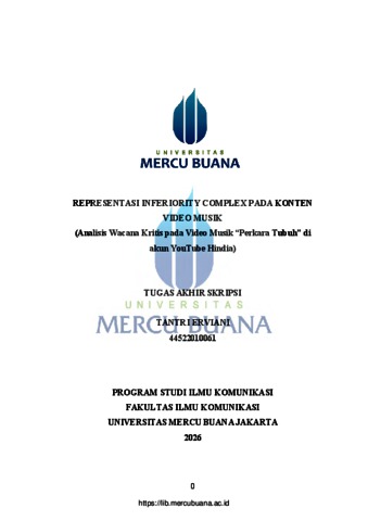 ERVIANI, TANTRI (2026) REPRESENTASI INFERIORITY COMPLEX PADA KONTEN VIDEO MUSIK (Analisis Wacana Kritis pada Video Musik "Perkara Tubuh" di akun YouTube Hindia). S1 thesis, Universitas Mercu Buana Jakarta.