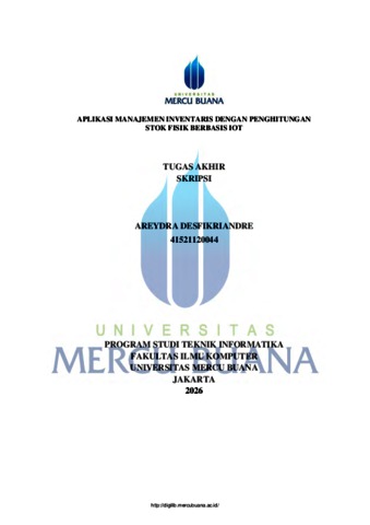 DESFIKRIANDRE, AREYDRA (2026) APLIKASI MANAJEMEN INVENTARIS DENGAN PENGHITUNGAN STOK FISIK BERBASIS IOT. S1 thesis, UNIVERISTAS MERCU BUANA - BUNCIT.