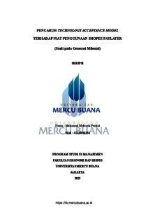 PERISAI, MOHAMAD MUBARIZ (2025) PENGARUH TECHNOLOGY ACCEPTANCE MODEL TERHADAP NIAT PENGGUNAAN SHOPEE PAYLATER (Studi pada Generasi Milenial). S1 thesis, Universitas Mercu Buana Jakarta.