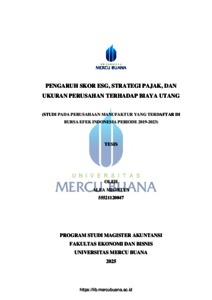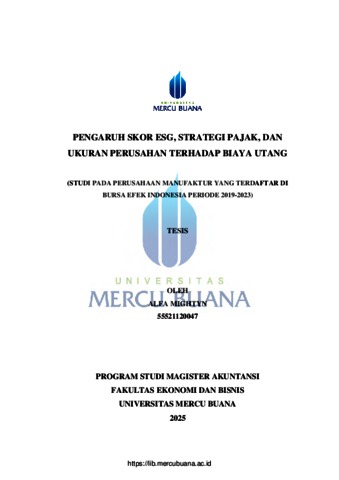 MIGHTYN, ALFA (2025) PENGARUH SKOR ESG, STRATEGI PAJAK, DAN UKURAN PERUSAHAN TERHADAP BIAYA UTANG (STUDI PADA PERUSAHAAN MANUFAKTUR YANG TERDAFTAR DI BURSA EFEK INDONESIA PERIODE 2019-2023). S2 thesis, Universitas Mercu Buana Jakarta.