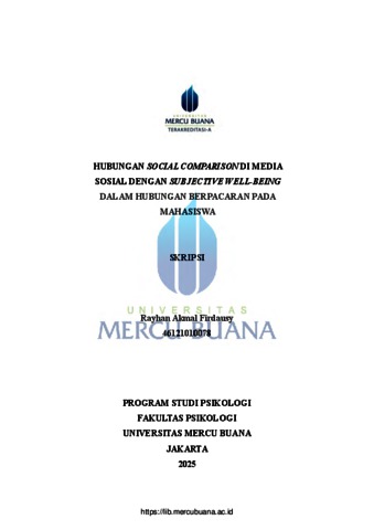 FIRDAUSY, RAYHAN AKMAL (2025) HUBUNGAN SOCIAL COMPARISON DI MEDIA SOSIAL DENGAN SUBJECTIVE WELL-BEING DALAM HUBUNGAN BERPACARAN PADA MAHASISWA. S1 thesis, Universitas Mercu Buana Jakarta.