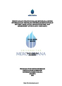 AMILIYA, NAGITA (2026) PERENCANAAN STRATEGIS DALAM MENGELOLA SISTEM INFORMASI DAN TEKNOLOGI INFORMASI MENGGUNAKAN METODE TOZER UNTUK SISTEM INVENTORY DAN MEMBERSHIP (STUDI KASUS: UMB MART). S1 thesis, Universitas Mercu Buana Jakarta.