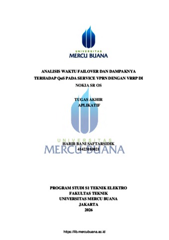 SAFTARSIDIK, HABIB BANI (2026) ANALISIS WAKTU FAILOVER DAN DAMPAKNYA TERHADAP QoS PADA SERVICE VPRN DENGAN VRRP DI NOKIA SR OS. S1 thesis, Universitas Mercu Buana Jakarta.