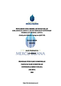PURWANTO, SIGIT (2026) PENGARUH CITRA MEREK JKT48 DAN IKLAN KOLABORASI JAPOTA x JKT48 TERHADAP KEPUTUSAN PEMBELIAN PRODUK JAPOTA (Studi pada followers Instagram @JKT48). S1 thesis, Universitas Mercu Buana Jakarta.