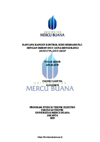 SADEWA, FAKHRI (2025) RANCANG BANGUN KONTROL SUHU BERBASIS PLC DENGAN OMRON E5CC GUNA MENGURANGI DEFECT PLATEN DROP. S1 thesis, Universitas Mercu Buana Jakarta.