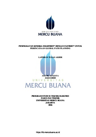 SANJAYA, AGUNG (2026) PENINGKATAN KINERJA SMARTRRT* DENGAN FASTRRT* UNTUK PERENCANAAN GLOBAL PATH PLANNING. S1 thesis, Universitas Mercu Buana Jakarta.