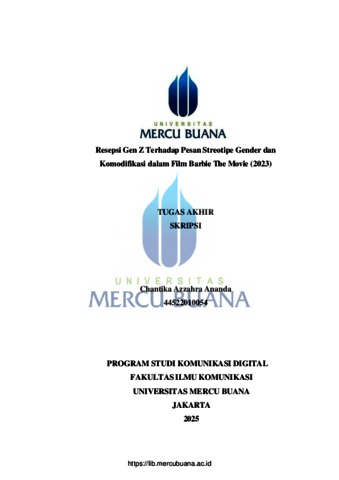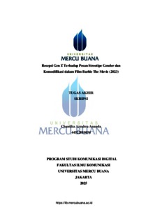 ANANDA, CHANTIKA AZZAHRA (2026) RESEPSI GEN Z TERHADAP PESAN STREOTIPE GENDER DAN KOMODIFIKASI DALAM FILM BARBIE THE MOVIE (2023). S1 thesis, Universitas Mercu Buana Jakarta.