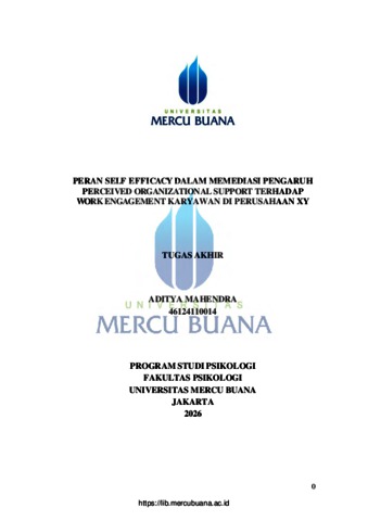 MAHENDRA, ADITYA (2026) PERAN SELF EFFICACY DALAM MEMEDIASI PENGARUH PERCEIVED ORGANIZATIONAL SUPPORT TERHADAP WORK ENGAGEMENT KARYAWAN DI PERUSAHAAN XY. S1 thesis, Universitas Mercu Buana Jakarta.