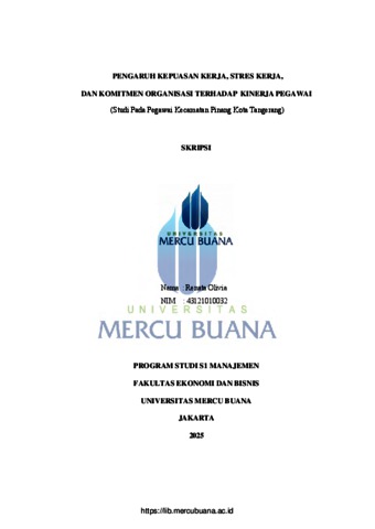 OLIVIA, RENATA (2025) PENGARUH KEPUASAN KERJA, STRES KERJA, DAN KOMITMEN ORGANISASI TERHADAP KINERJA PEGAWAI (Studi Pada Pegawai Kecamatan Pinang Kota Tangerang). S1 thesis, Universitas Mercu Buana Jakarta.