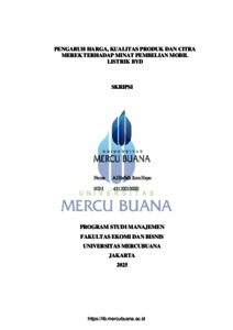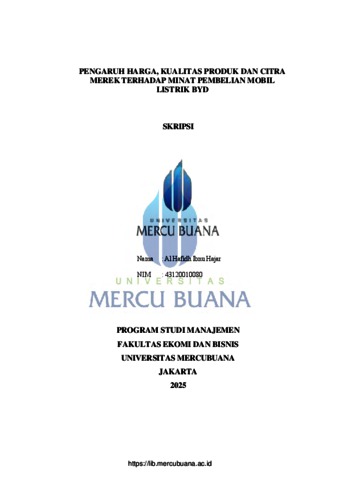 HAJAR, AL HAFIDH IBNU (2025) PENGARUH HARGA, KUALITAS PRODUK DAN CITRA MEREK TERHADAP MINAT PEMBELIAN MOBIL LISTRIK BYD. S1 thesis, Universitas Mercu Buana Jakarta.