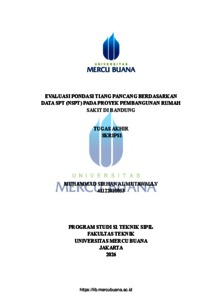 MUTAWALLY, MUHAMMAD SIRHAN AL (2026) EVALUASI PONDASI TIANG PANCANG BERDASARKAN DATA SPT (NSPT) PADA PROYEK PEMBANGUNAN RUMAH SAKIT DI BANDUNG. S1 thesis, Universitas Mercu Buana Jakarta.