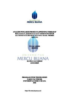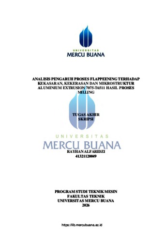 ALFARIDZI, RAYHAN (2026) ANALISIS PENGARUH PROSES FLAPPEENING TERHADAP KEKASARAN, KEKERASAN DAN MIKROSTRUKTUR ALUMINIUM EXTRUSION 7075-T6511 HASIL PROSES MILLING. S1 thesis, Universitas Mercu Buana Jakarta.
