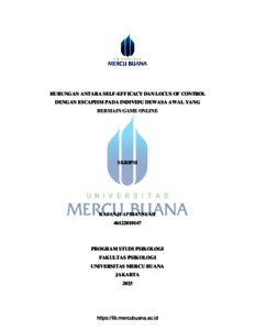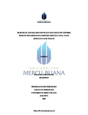 APRIANSYAH, RAFANJI (2026) HUBUNGAN ANTARA SELF-EFFICACY DAN LOCUS OF CONTROL DENGAN ESCAPISM PADA INDIVIDU DEWASA AWAL YANG BERMAIN GAME ONLINE. S1 thesis, Universitas Mercu Buana Jakarta.