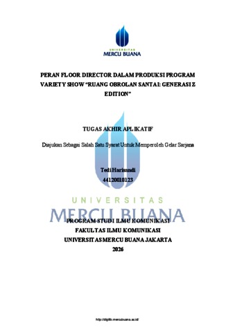 Harisandi, Tedi (2026) PERAN FLOOR DIRECTOR DALAM PRODUKSI PROGRAM VARIETY SHOW “RUANG OBROLAN SANTAI: GENERASI Z EDITION”. S1 thesis, UNIVERISTAS MERCU BUANA - BUNCIT.