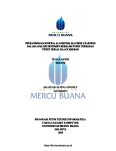 NOORLY, AKASYAH SAVINA (2026) PERBANDINGAN KINERJA ALGORITMA MACHINE LEARNING DALAM ANALISIS SENTIMEN BERBASIS TOPIK TERHADAP TWEET SERIAL BLACK MIRROR. S1 thesis, Universitas Mercu Buana Jakarta.