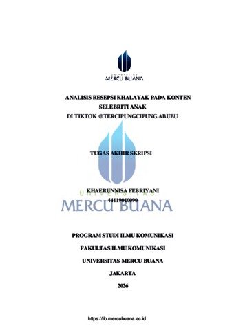 FEBRIYANI, KHAERUNNISA (2026) ANALISIS RESEPSI KHALAYAK PADA KONTEN SELEBRITI ANAK DI TIKTOK @TERCIPUNGCIPUNG.ABUBU. S1 thesis, Universitas Mercu Buana Jakarta.