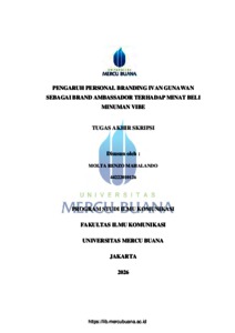 MAHALANDO, MOLTA RENZO (2026) PENGARUH PERSONAL BRANDING IVAN GUNAWAN SEBAGAI BRAND AMBASSADOR TERHADAP MINAT BELI MINUMAN VIBE. S1 thesis, Universitas Mercu Buana Jakarta.