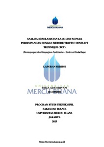 RIVANI, FIRZA ADAM (2026) ANALISA KESELAMATAN LALU LINTAS PADA PERSIMPANGAN DENGAN METODE TRAFFIC CONFLICT TECHNIQUE (TCT) (Persimpangan Jalan Bhayangkara Pusdiklantas - Boulevard Graha Raya). S1 thesis, Universitas Mercu Buana Jakarta.