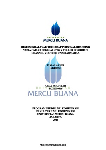 FUADIYAH, ALDA (2026) RESEPSI KHALAYAK TERHADAP PERSONAL BRANDING NADIA OMARA SEBAGAI STORY TELLER HORROR DI CHANNEL YOUTUBE @NADIAOMARAA. S1 thesis, Universitas Mercu Buana Jakarta.