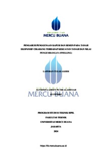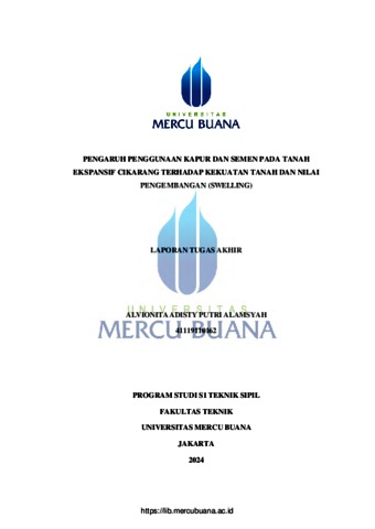 ALAMSYAH, ALVIONITA ADISTY PUTRI (2025) PENGARUH PENGGUNAAN KAPUR DAN SEMEN PADA TANAH EKSPANSIF CIKARANG TERHADAP KEKUATAN TANAH DAN NILAI PENGEMBANGAN (SWELLING). S1 thesis, Universitas Mercu Buana Jakarta.