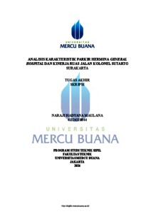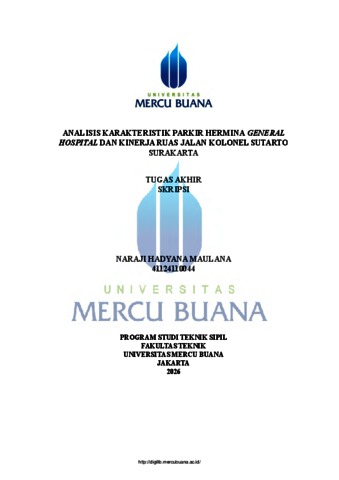 MAULANA, NARAJI HADYANA (2026) ANALISIS KARAKTERISTIK PARKIR HERMINA GENERAL HOSPITAL DAN KINERJA RUAS JALAN KOLONEL SUTARTO SURAKARTA. S1 thesis, UNIVERISTAS MERCU BUANA - BUNCIT.